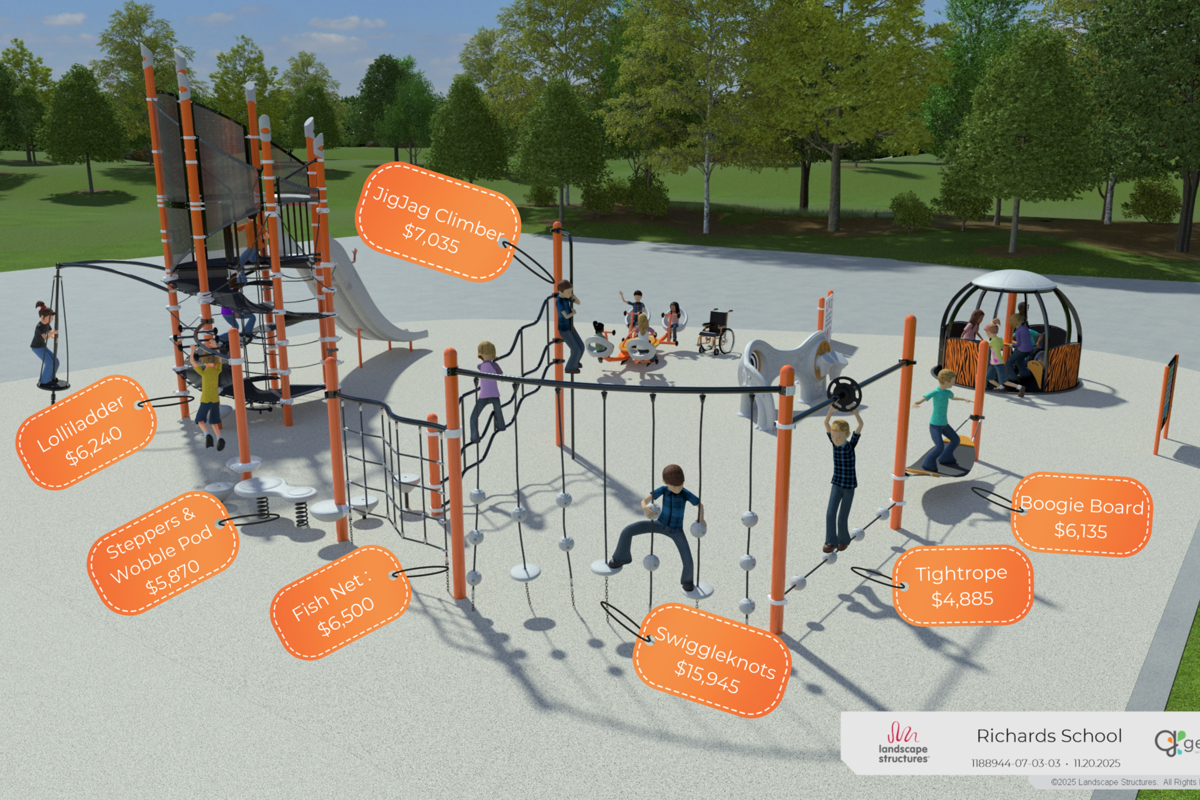 The increased enrollment over the past several years at Richards Elementary has placed added demand on its existing playground spaces. While the school currently offers multiple play areas for different age groups, overlapping recess schedules have led to overcrowding and limited opportunities for inclusive, accessible play.